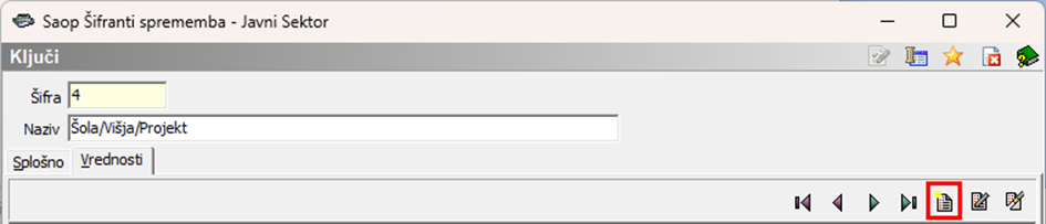 Preko ikone vnesi zapis vnesemo nov ključ: