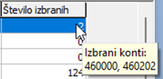 V primeru, da konte izberemo s pomočjo gumba Izbrani konti, so konti vidni v stolpcu Število izbranih: