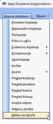 Z izračunom nadaljujemo v Dnevnih obdelavah / Delitev po ključih.