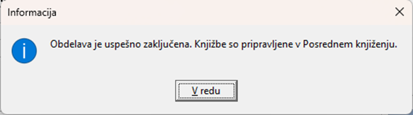 Ko podatke izpolnimo, pritisnemo potrdi. V Posredno knjiženje se pripravijo knjiženja.