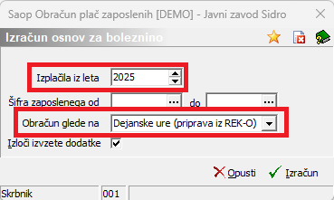 Izračun osnov za boleznino je potrebno izvesti preden odpremo prvi obračun za novo obračunsko leto (januarsko plačo).