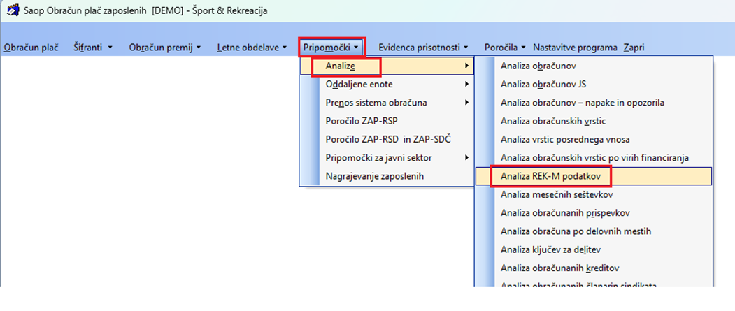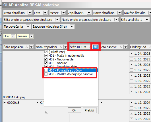 V polju Šifra REK-M izključimo prikaz podatkov M05 – Povračila stroškov in M08 – Razlika do najnižje osnove, kateri niso vključeni v osnovo za boleznino.
