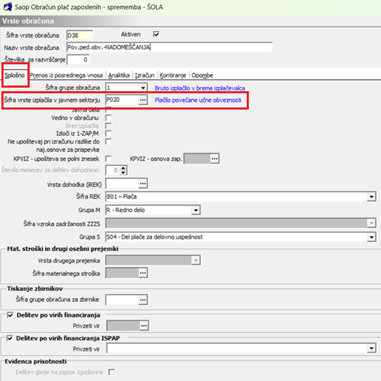 Svetujemo vam, da si v šifrantu Vrst obračuna (Šifranti…Sistem obračuna…Vrste obračuna) na šifri, katero uporabljate za namen izplačila nadomeščanja spremenite podatek Šifra vrste izplačila v javnem sektorju (do sedaj ste poročali na vrsto P020).