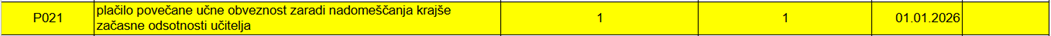 Sporočamo vam, da je z verzijo Saop 2025.08.009 oz. novejšo, dodana nova šifra vrste izplačila v javnem sektorju P021 – Plačilo povečane učne obveznosti zaradi nadomeščanja krajše začasne odsotnosti učitelja.