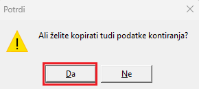 Kontiranje na vrstici Potrdimo. Tako se nam kopira nastavitev kontiranja iz D02, katerega lahko po potrebi popravimo.