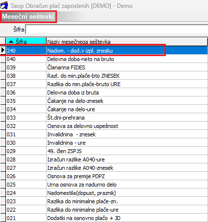 Vsi kateri obračunavate plače in nadomestila po KP VIZ – vzgoja in izobraževanje, morate imeti šifro vrste obračuna označeno v mesečnem seštevku 240 Nadomestilo – dod. v izpl. znesku.