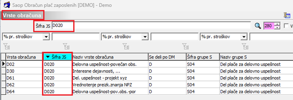 Na vseh vrstah obračuna, katere imajo določeno šifro za JS D020 (npr. interesne dejavnosti, varstvo vozačev,…) je potrebno določiti NOVO pripadajočo šifro za JS. Če se odločite, da je ta šifra P020 (Plačilo povečane učne obveznosti) naj vas opozorimo, da je potrebno za poročanje podatkov v sistem Ispap imeti vneseno tudi število ur, saj v nasprotnem primeru oddaja podatkov v sistem Ispap ne bo mogoča.