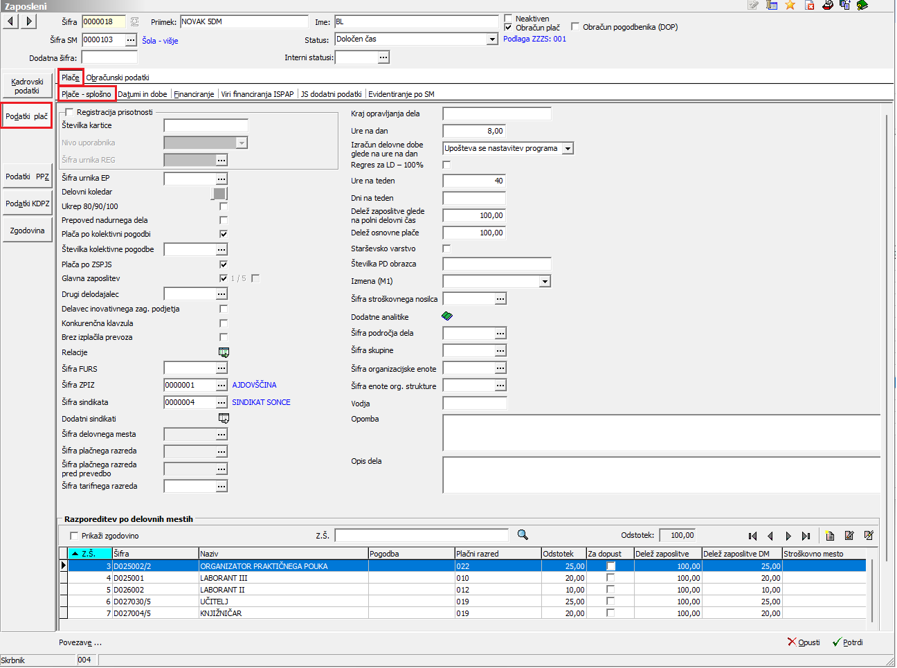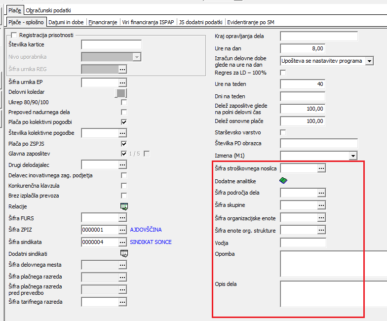 Z verzijo programa Saop 2026.02.000 ali novejšo smo v Šifrantu zaposlenih na zavihku Podatki plač – Plače – Plače - Splošno izvedli vizualno prenovo šifranta zaposlenih. Namen sprememb je izboljšati preglednost in logiko razporeditve podatkov.