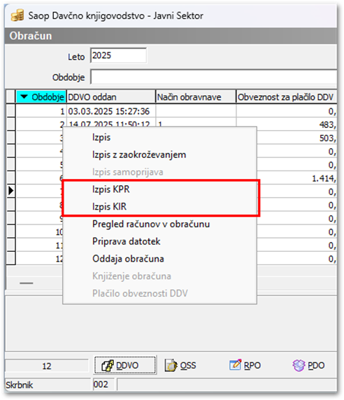 Na zavihku KIR / KPR lahko evidence posameznega obračuna pošljemo direktno na portal eDavki.
