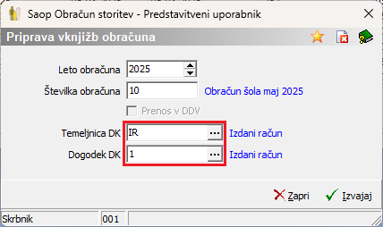 Odpre se okno, kjer vpišemo, na katero Temeljnico in Dogodek se bodo pripravile knjižbe za izbrani obračun.