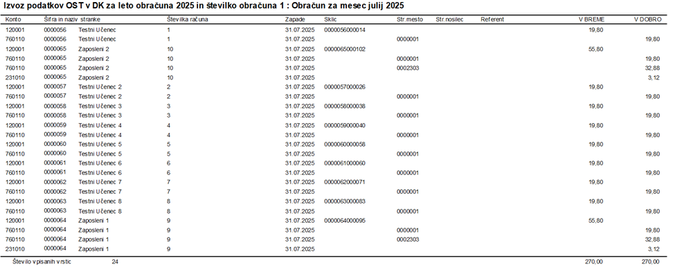 Ob kliku na Izvajaj se pripravi izpis izvoza podatkov za modul DK in DDVn ter pripravijo knjižbe.